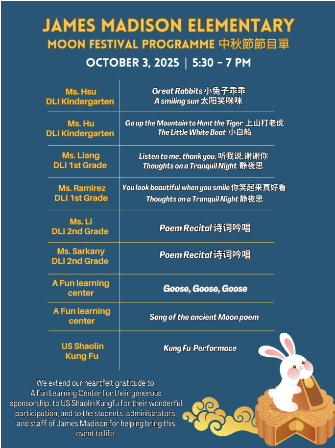 Mid-Autumn Moon Festival Shines Bright at Madison This past Friday, our school community gathered to celebrate the Mid-Autumn Moon Festival , a cherished tradition honoring gratitude, family, and togetherness. Our Mandarin Dual Language Immersion stu