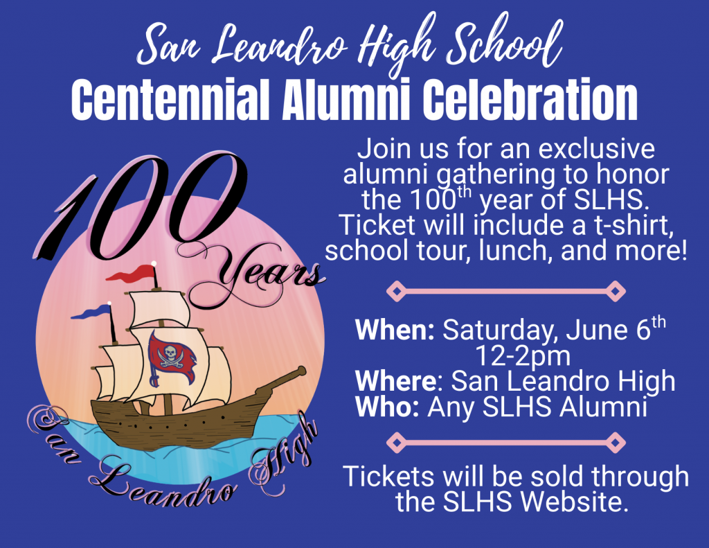 San Leandro High School is proud to celebrate 100 years of excellence, connection, and Pirate pride. Join us for a special Centennial Alumni Celebration as we honor a century of memories and the generations who have shaped our school community.