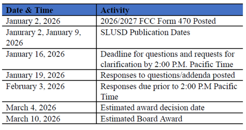 INTERNET SERVICE PROVIDER FOR SAN LEANDRO UNIFIED SCHOOL DISTRICT REQUEST FOR PROPOSALS (RFP) FOR E-RATE FY 2026 (2026-27)